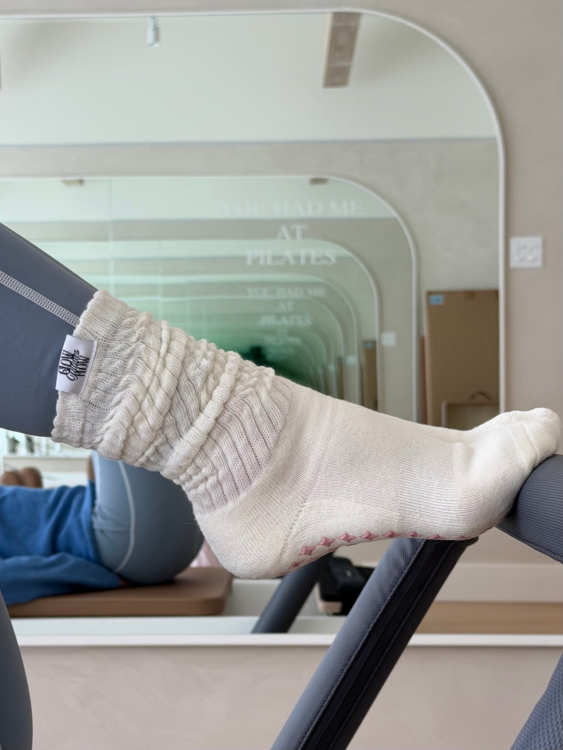 Bas long de style “scrunch”, 1 paire crème, 1 paire rose.